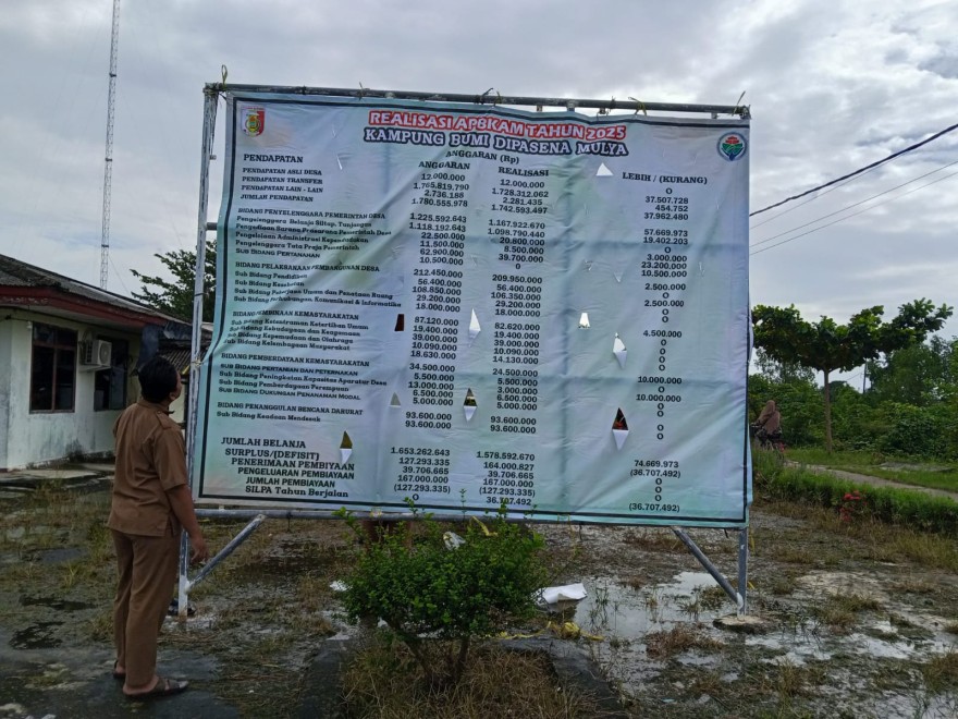 Wujud Transparansi, Pemerintah Kampung Bumi Dipasena Mulya Pasang Banner Realisasi APBKAM 2025