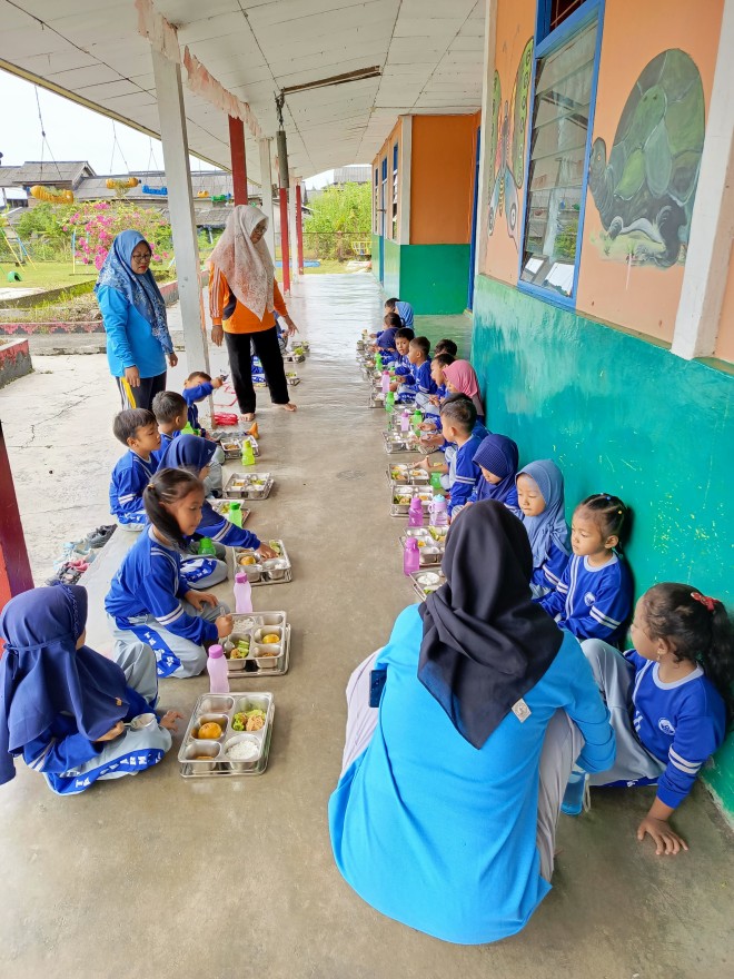 Bumi Dipasena Mulya — Suasana ceria dan penuh antusias tampak di SDN 1 Bumi Dipasena Mulya dan TK Dharma Wanita Bumi Dipasena Mulya saat pelaksanaan hari pertama program Makan Bergizi Gratis (MBG), Jumat, 09 Januari 2026. Program ini disalurkan oleh SPPG Sinar Pelita Hati sebagai bentuk dukungan nyata terhadap peningkatan gizi dan kesehatan peserta didik.